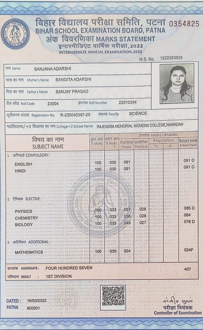 | Exam | Full Marks | Pass Marks | Marks Obtained |