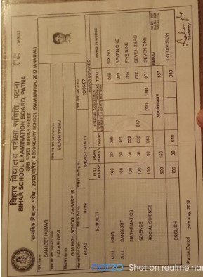 | Exam | Full Marks | Pass Marks | Marks Obtained |