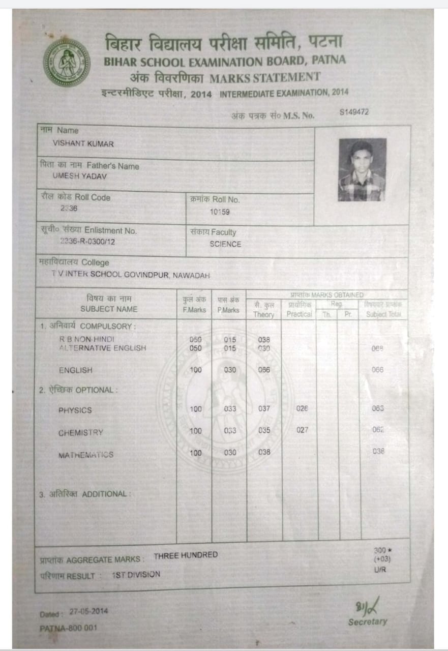 | Exam | Full Marks | Pass Marks | Marks Obtained |