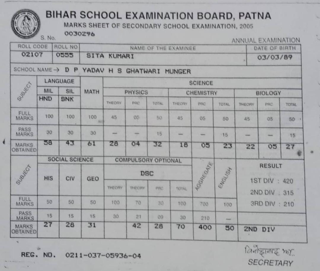 | Exam | Full Marks | Pass Marks | Marks Obtained |