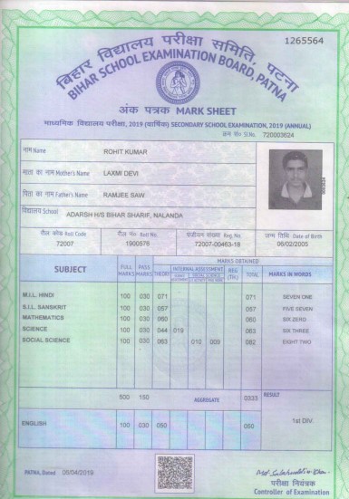| Exam | Full Marks | Pass Marks | Marks Obtained |