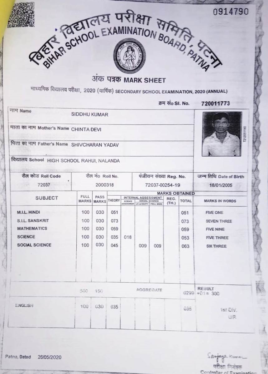 | Exam | Full Marks | Pass Marks | Marks Obtained |