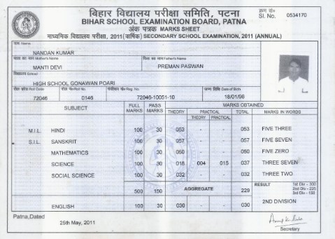 | Exam | Full Marks | Pass Marks | Marks Obtained |