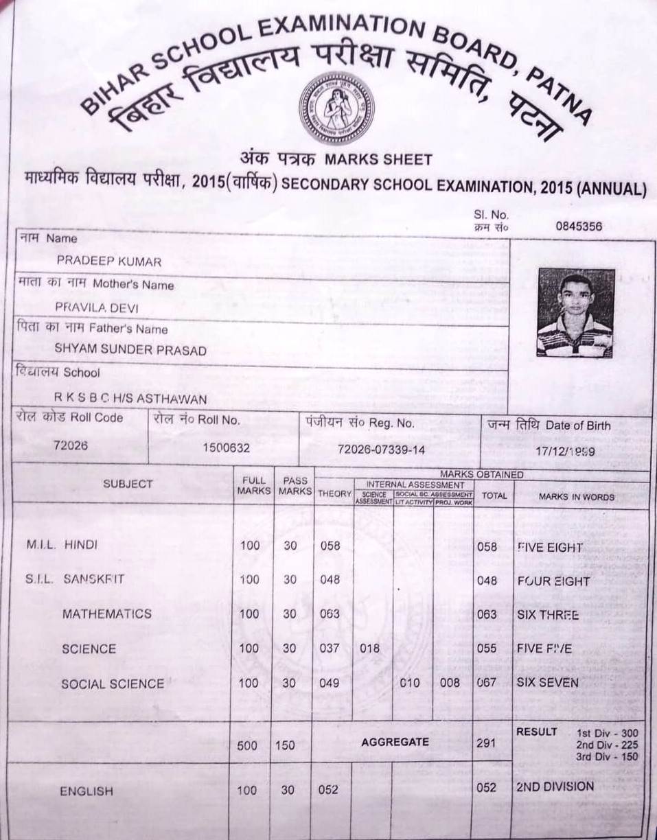 | Exam | Full Marks | Pass Marks | Marks Obtained |