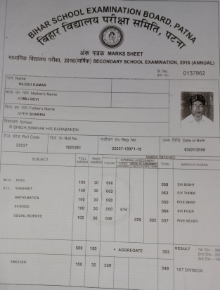 | Exam | Full Marks | Pass Marks | Marks Obtained |