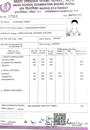 | Exam | Full Marks | Pass Marks | Marks Obtained |