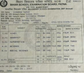 | Exam | Full Marks | Pass Marks | Marks Obtained |