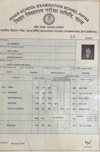 | Exam | Full Marks | Pass Marks | Marks Obtained |