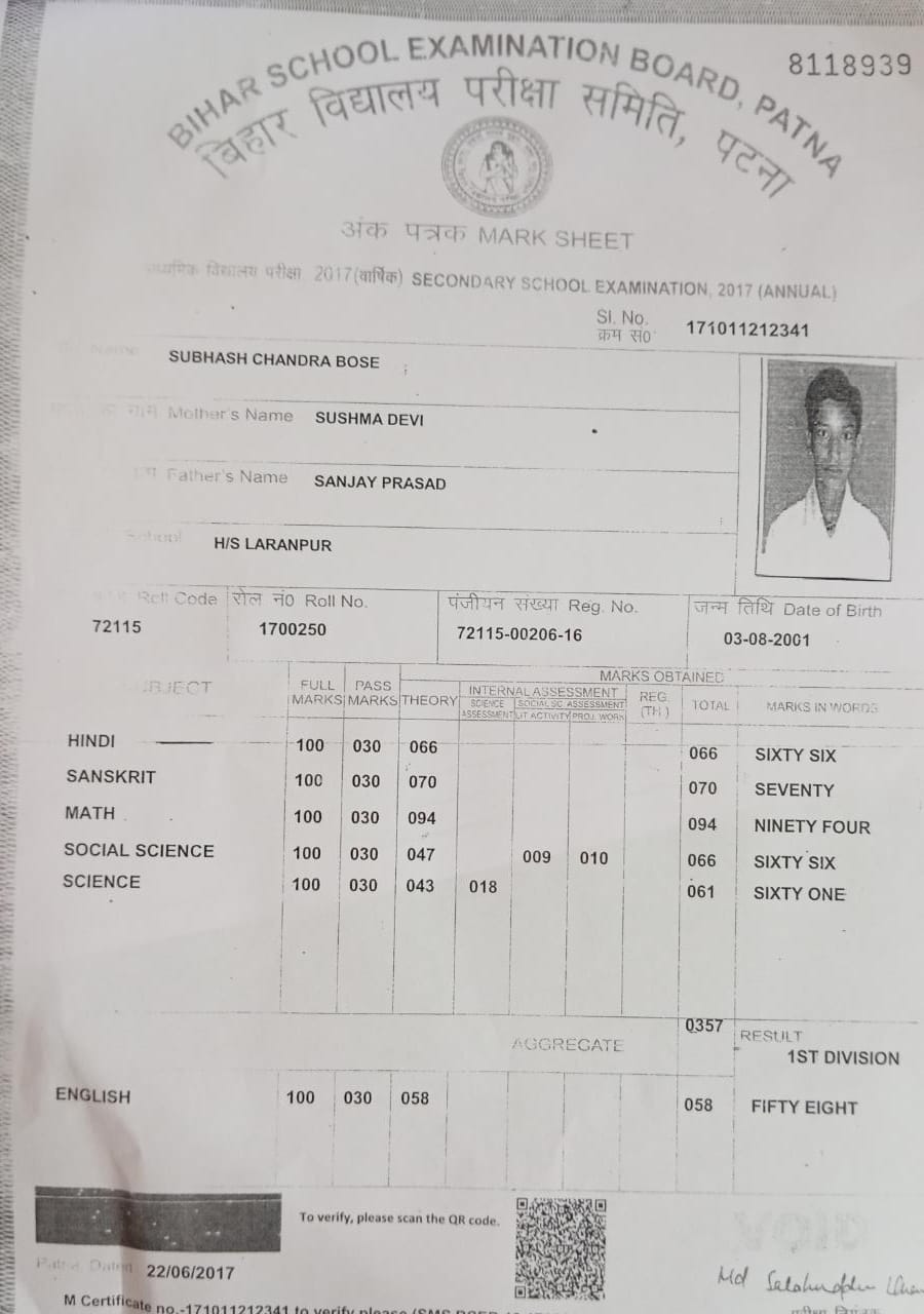 | Exam | Full Marks | Pass Marks | Marks Obtained |