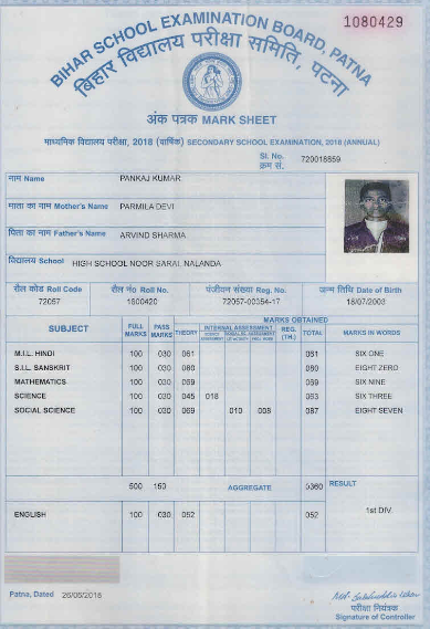 | Exam | Full Marks | Pass Marks | Marks Obtained |