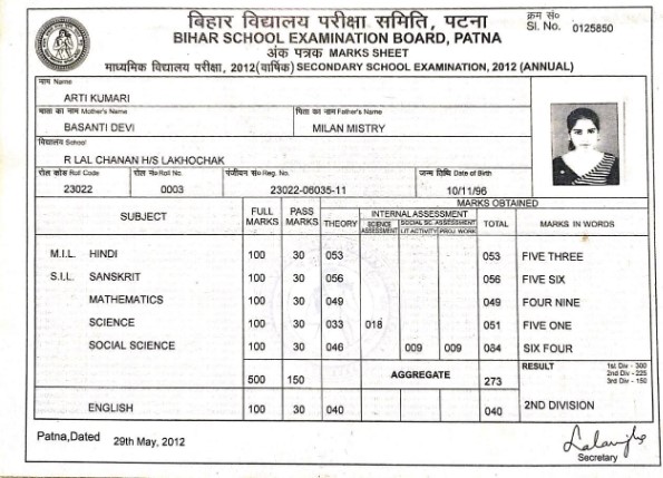 | Exam | Full Marks | Pass Marks | Marks Obtained |