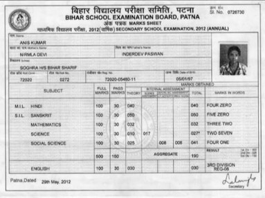 | Exam | Full Marks | Pass Marks | Marks Obtained |