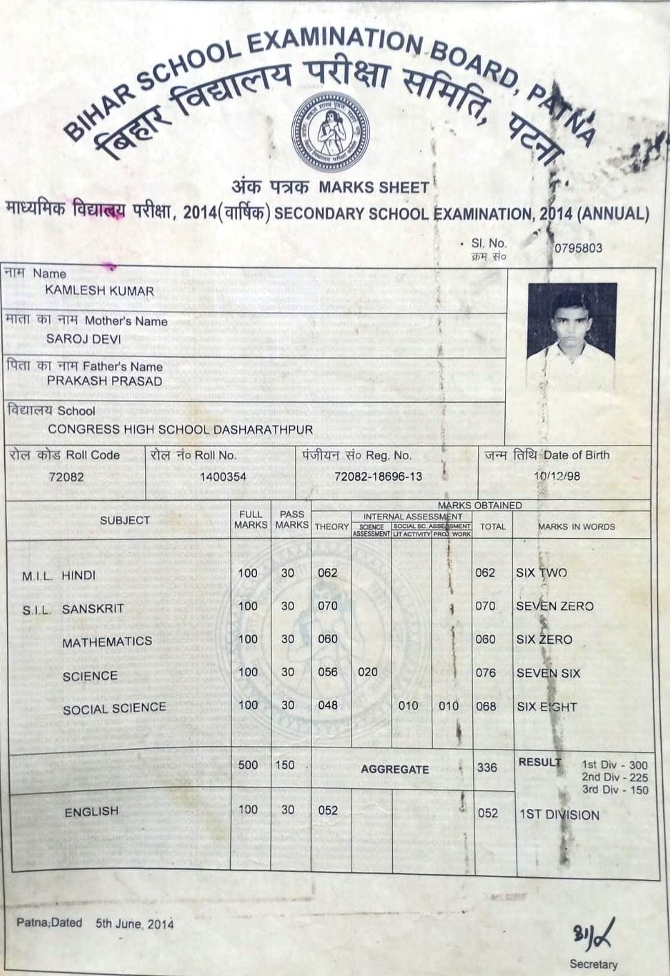 | Exam | Full Marks | Pass Marks | Marks Obtained |