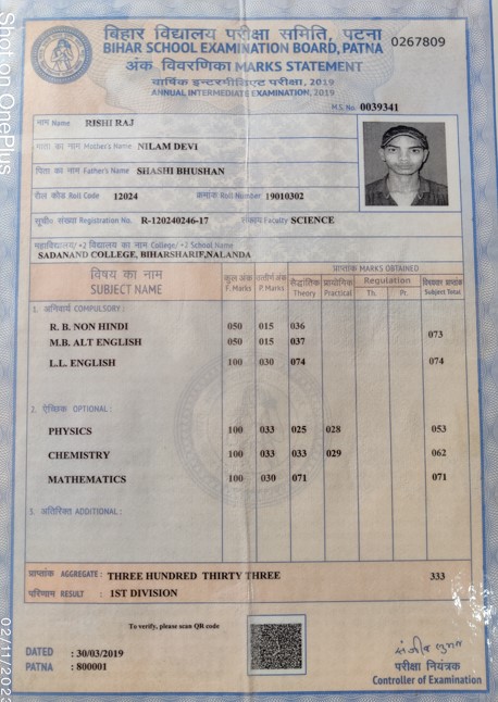 | Exam | Full Marks | Pass Marks | Marks Obtained |