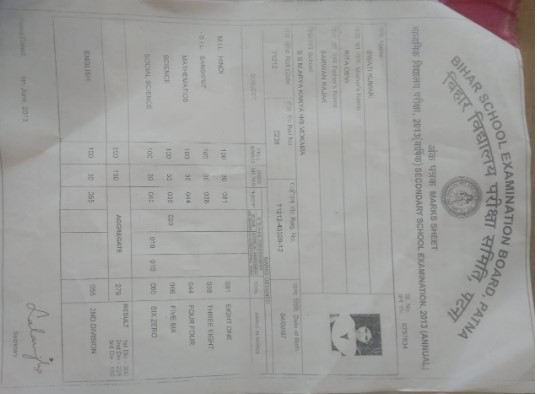 | Exam | Full Marks | Pass Marks | Marks Obtained |