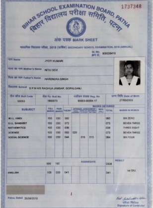 | Exam | Full Marks | Pass Marks | Marks Obtained |