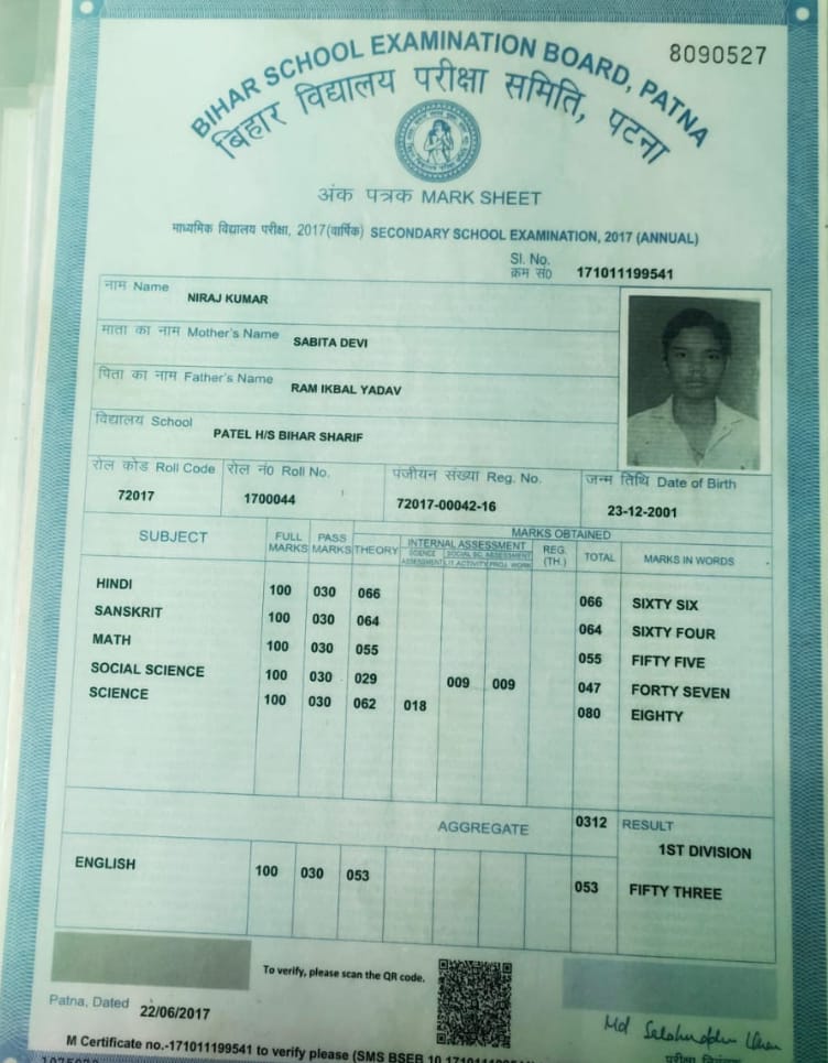 | Exam | Full Marks | Pass Marks | Marks Obtained |
