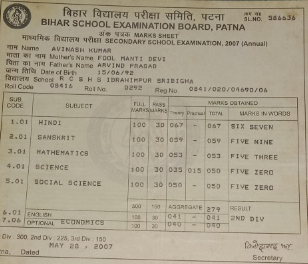 | Exam | Full Marks | Pass Marks | Marks Obtained |