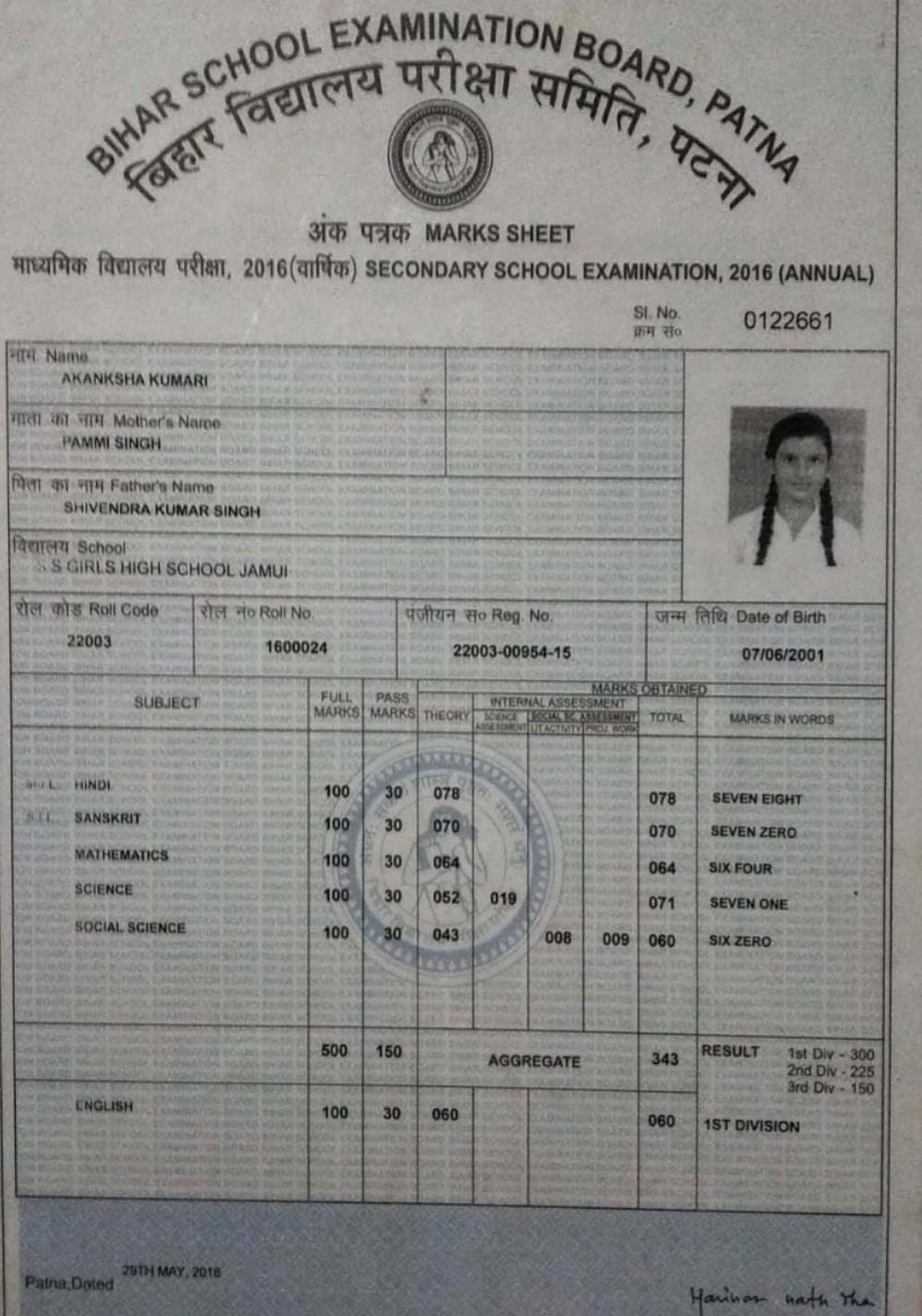 | Exam | Full Marks | Pass Marks | Marks Obtained |
