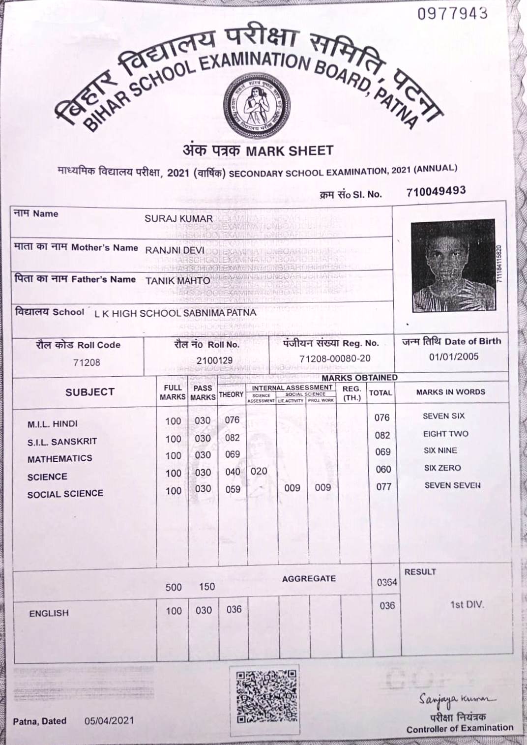 | Exam | Full Marks | Pass Marks | Marks Obtained |