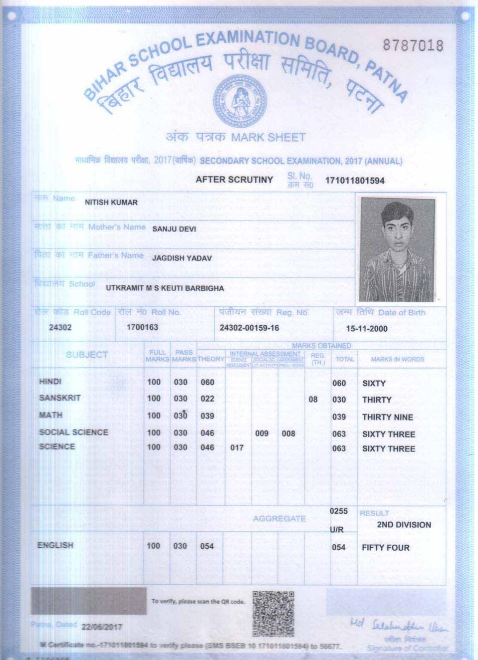 | Exam | Full Marks | Pass Marks | Marks Obtained |