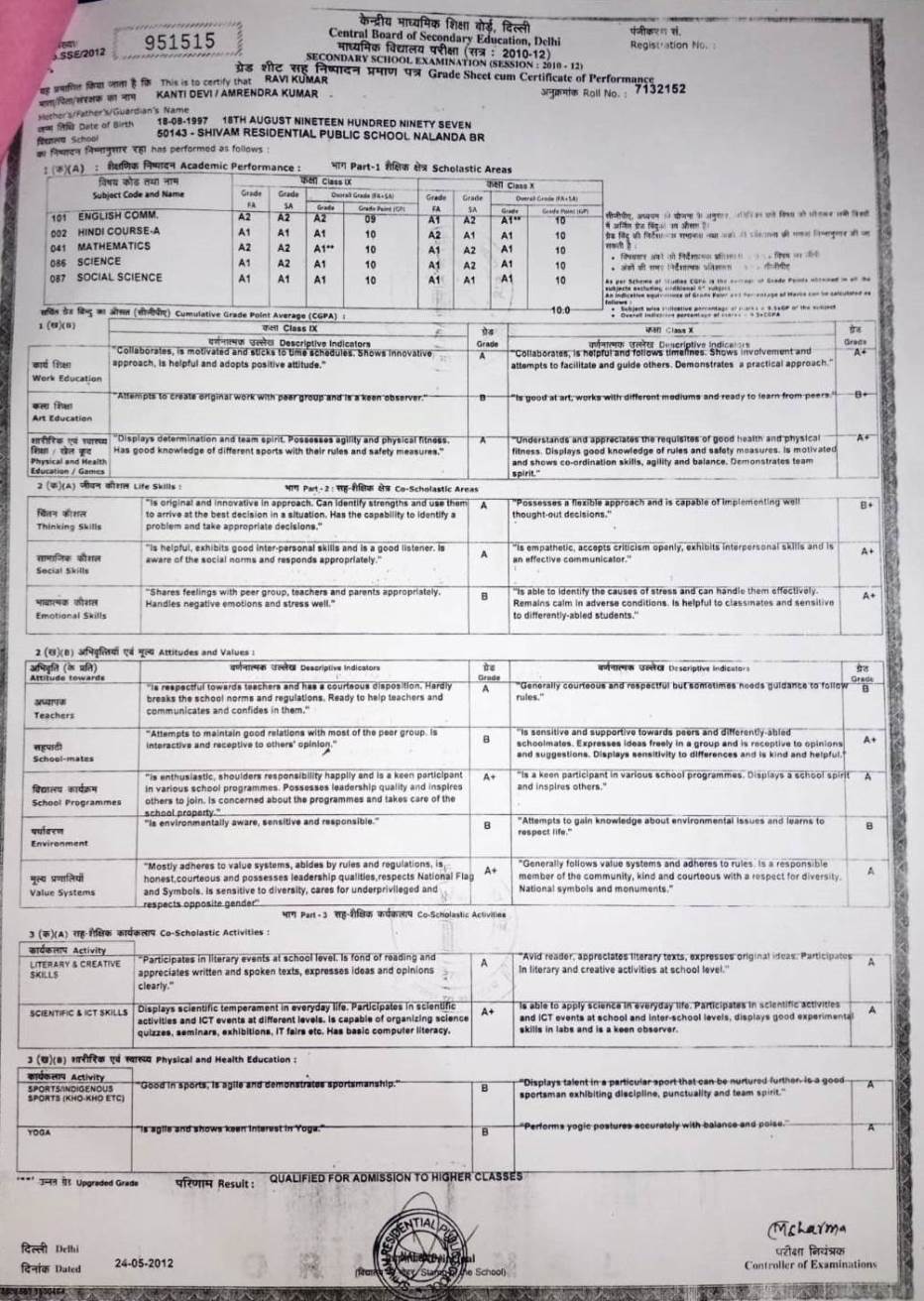 | Exam | Full Marks | Pass Marks | Marks Obtained |