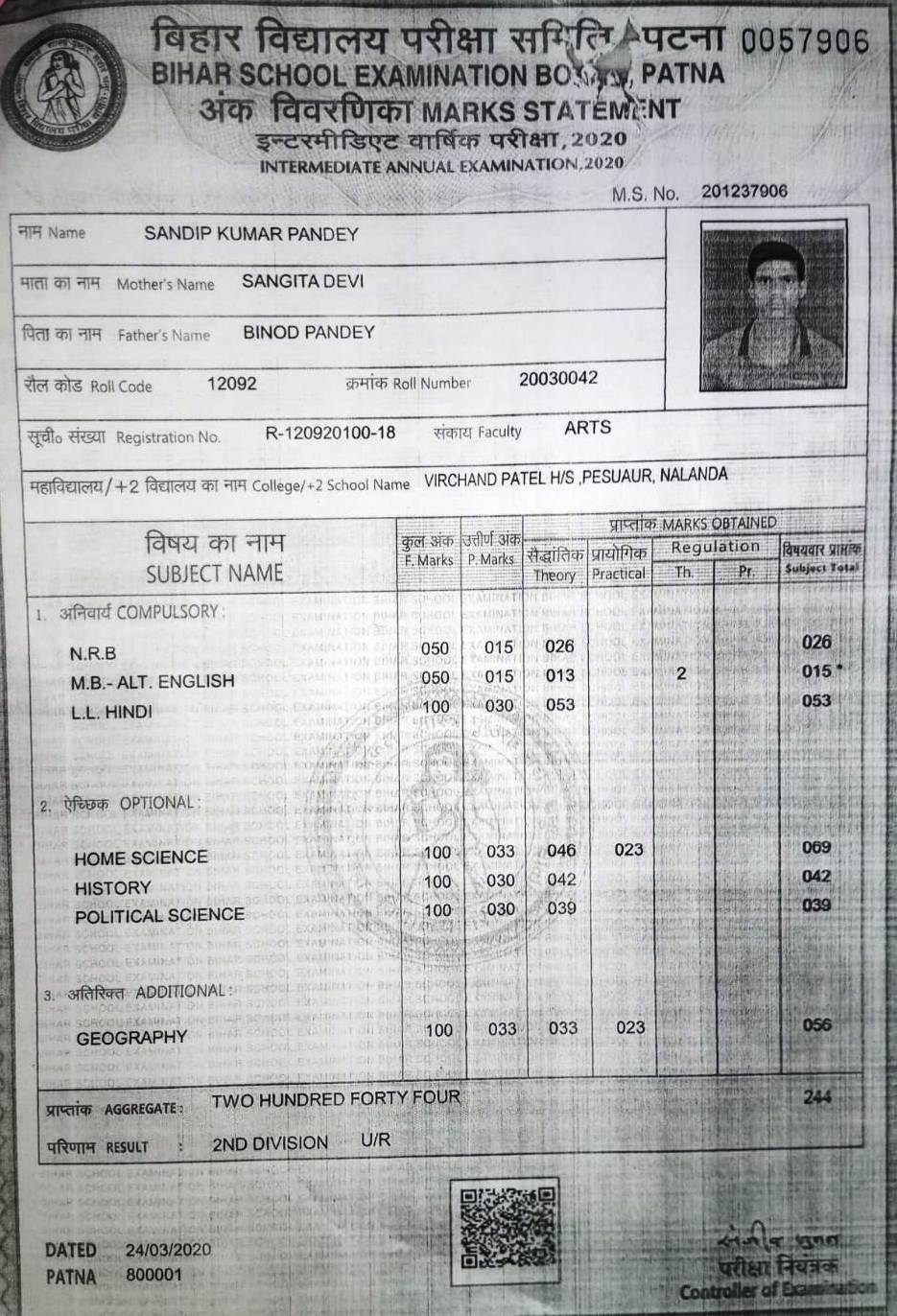 | : | Dekulighat, Khandakpar, BIHAR SHARIF-803101, Nalanda | |
