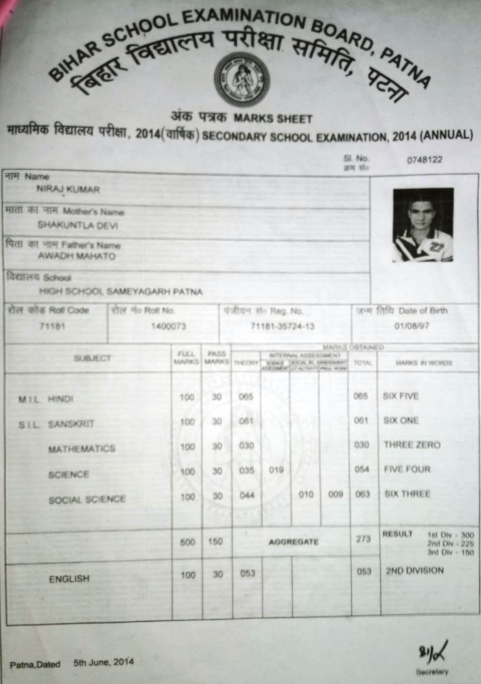 | Exam | Full Marks | Pass Marks | Marks Obtained |