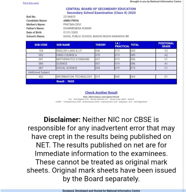 | Exam | Full Marks | Pass Marks | Marks Obtained |