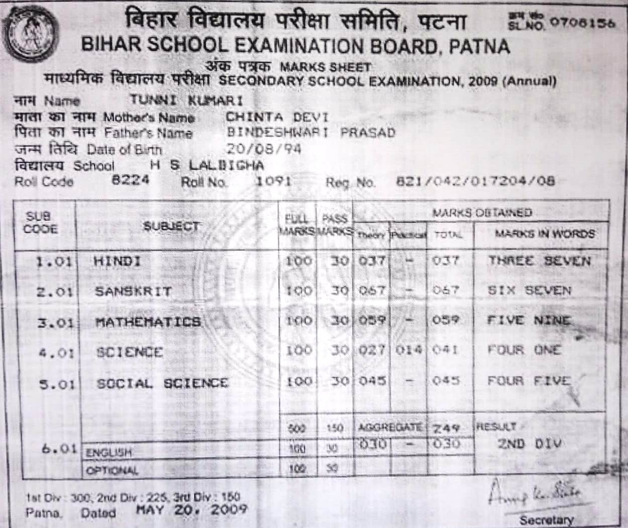 | Exam | Full Marks | Pass Marks | Marks Obtained |