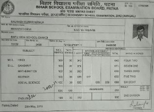 | Exam | Full Marks | Pass Marks | Marks Obtained |