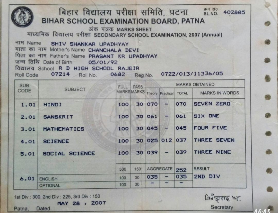 | Exam | Full Marks | Pass Marks | Marks Obtained |