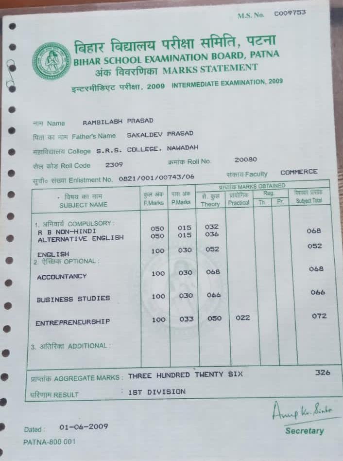 | Exam | Full Marks | Pass Marks | Marks Obtained |
