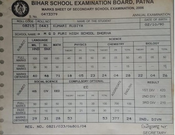| Exam | Full Marks | Pass Marks | Marks Obtained |