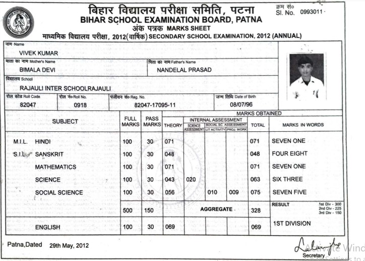 | Exam | Full Marks | Pass Marks | Marks Obtained |