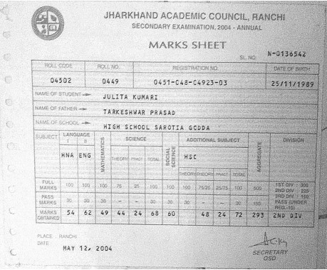 | Exam | Full Marks | Pass Marks | Marks Obtained |
