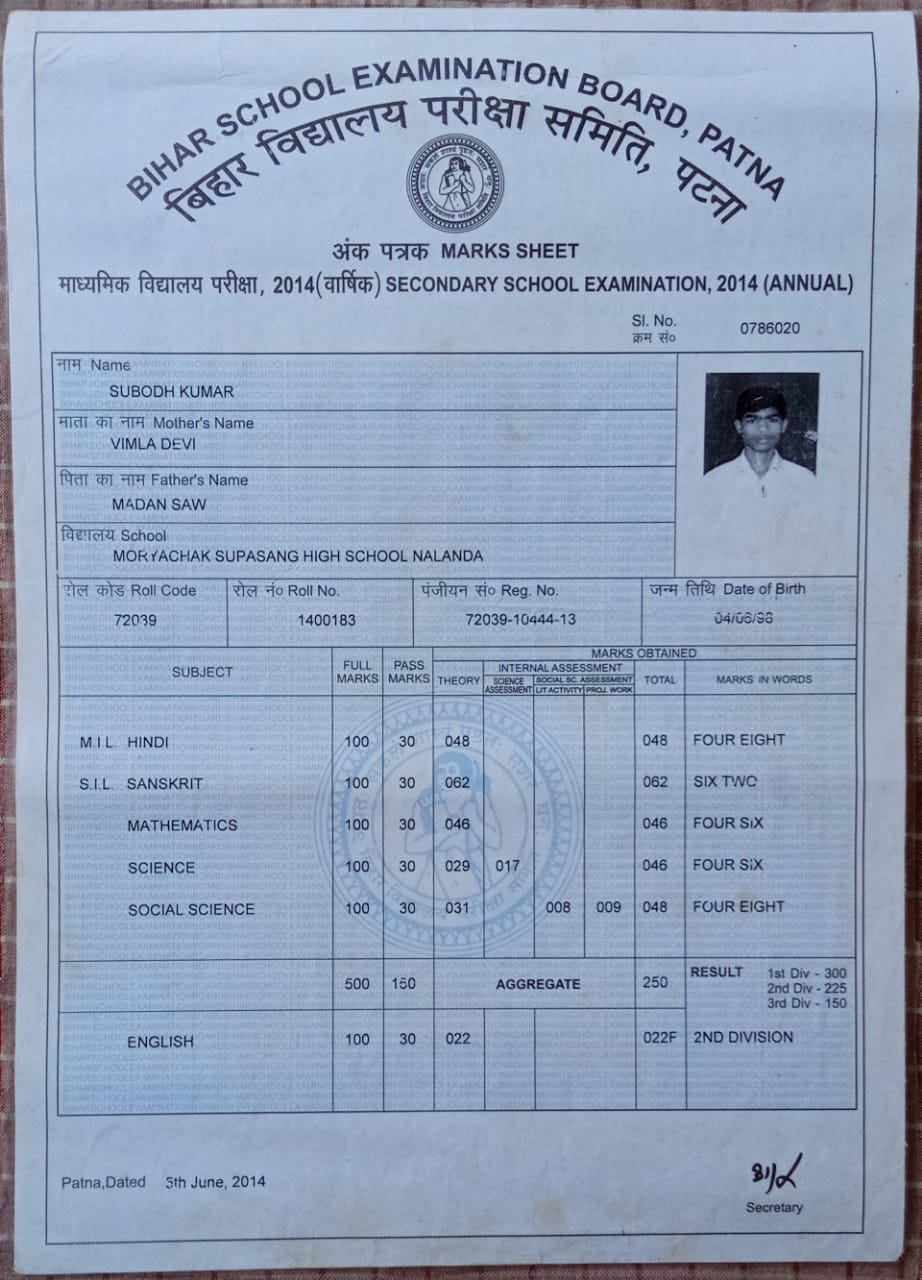 | Exam | Full Marks | Pass Marks | Marks Obtained |