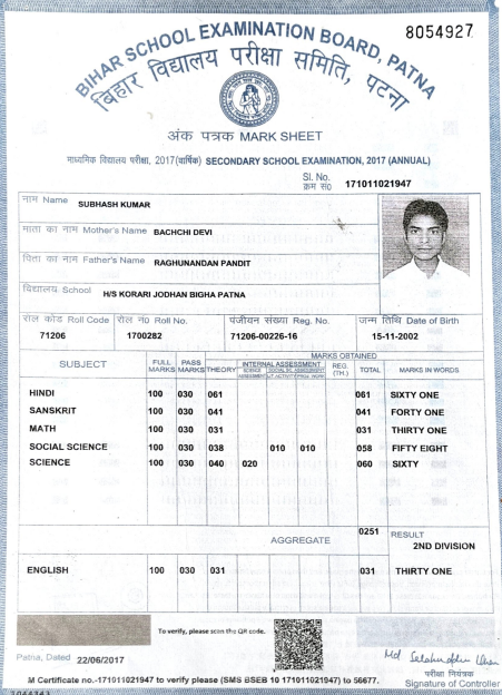 | Exam | Full Marks | Pass Marks | Marks Obtained |