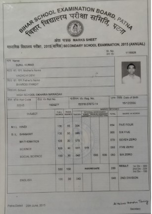 | Exam | Full Marks | Pass Marks | Marks Obtained |