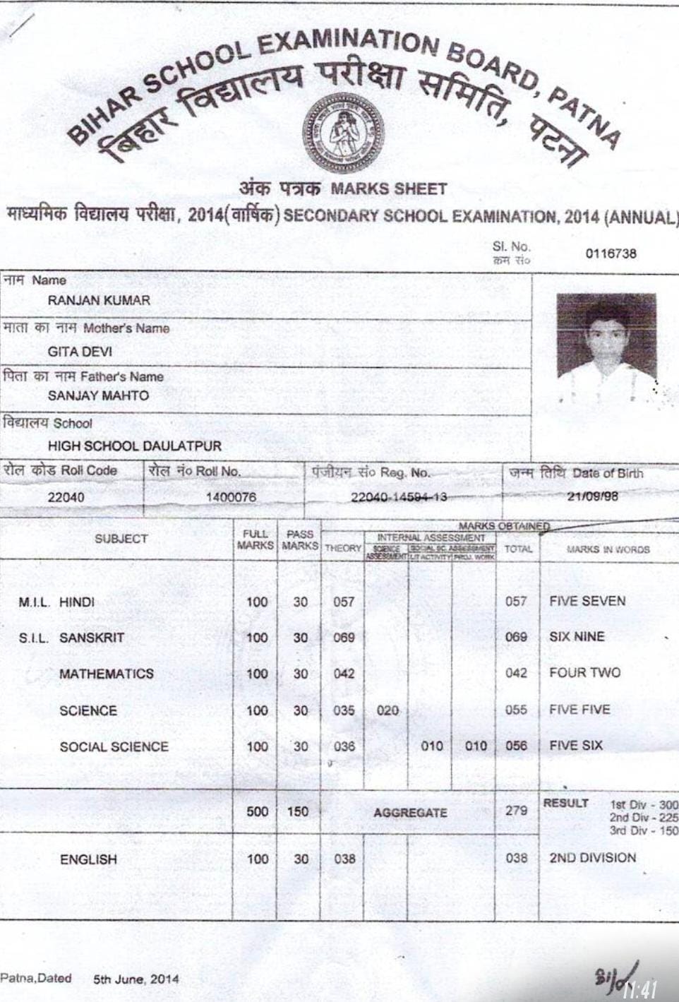 | Exam | Full Marks | Pass Marks | Marks Obtained |
