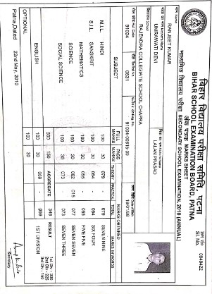 | Exam | Full Marks | Pass Marks | Marks Obtained |