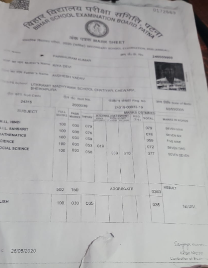 | Exam | Full Marks | Pass Marks | Marks Obtained |