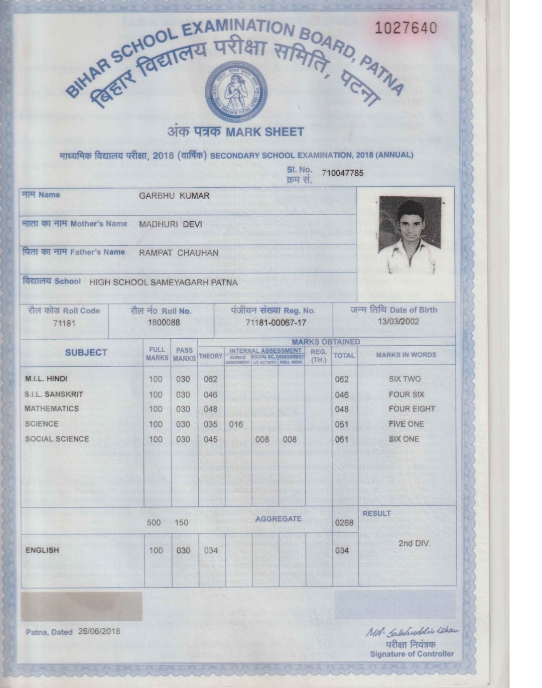 | Exam | Full Marks | Pass Marks | Marks Obtained |