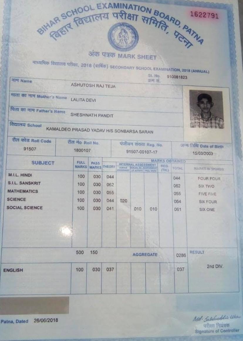 | Exam | Full Marks | Pass Marks | Marks Obtained |