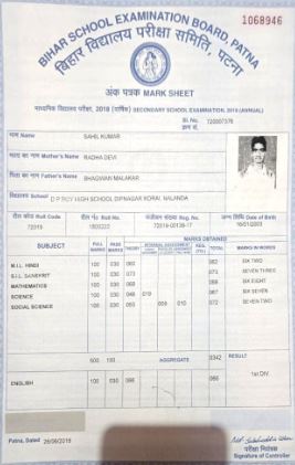 | Exam | Full Marks | Pass Marks | Marks Obtained |