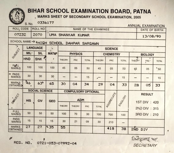| Exam | Full Marks | Pass Marks | Marks Obtained |