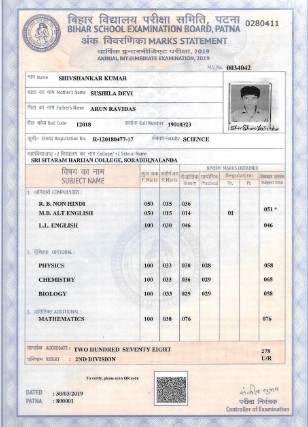 | Exam | Full Marks | Pass Marks | Marks Obtained |