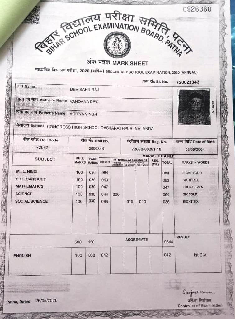 | Exam | Full Marks | Pass Marks | Marks Obtained |