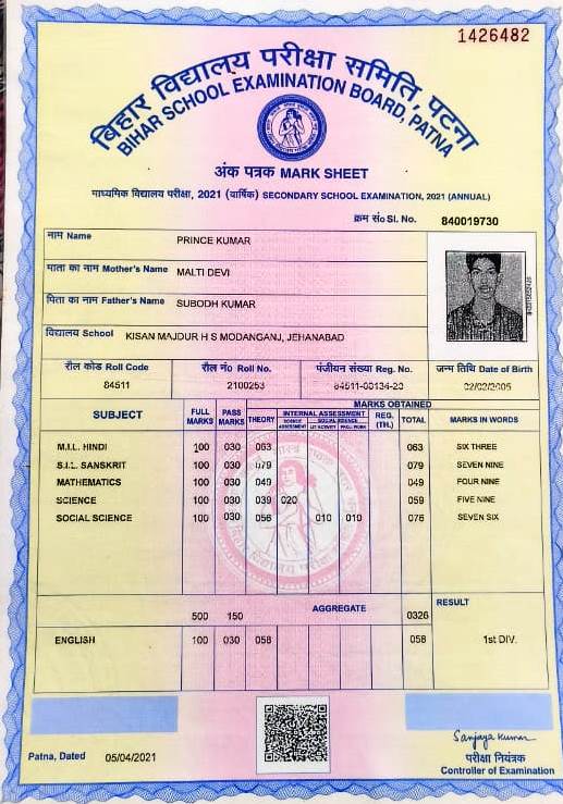 | Exam | Full Marks | Pass Marks | Marks Obtained |