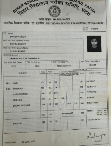 | Exam | Full Marks | Pass Marks | Marks Obtained |